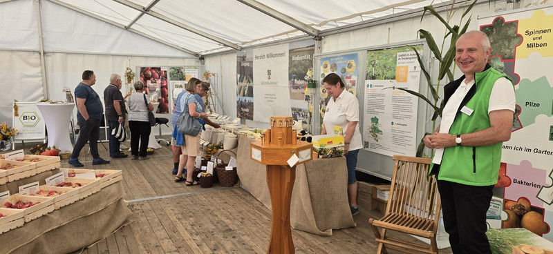 An einem weiteren Stand im Zelt wurde über die Themen ökologische Produktion und ökologischer Landbau informiert. Der Verbraucher erfuhr viel Wissenswertes über das Bio-Siegel und die Besonderheiten der ökologischen Produktion.